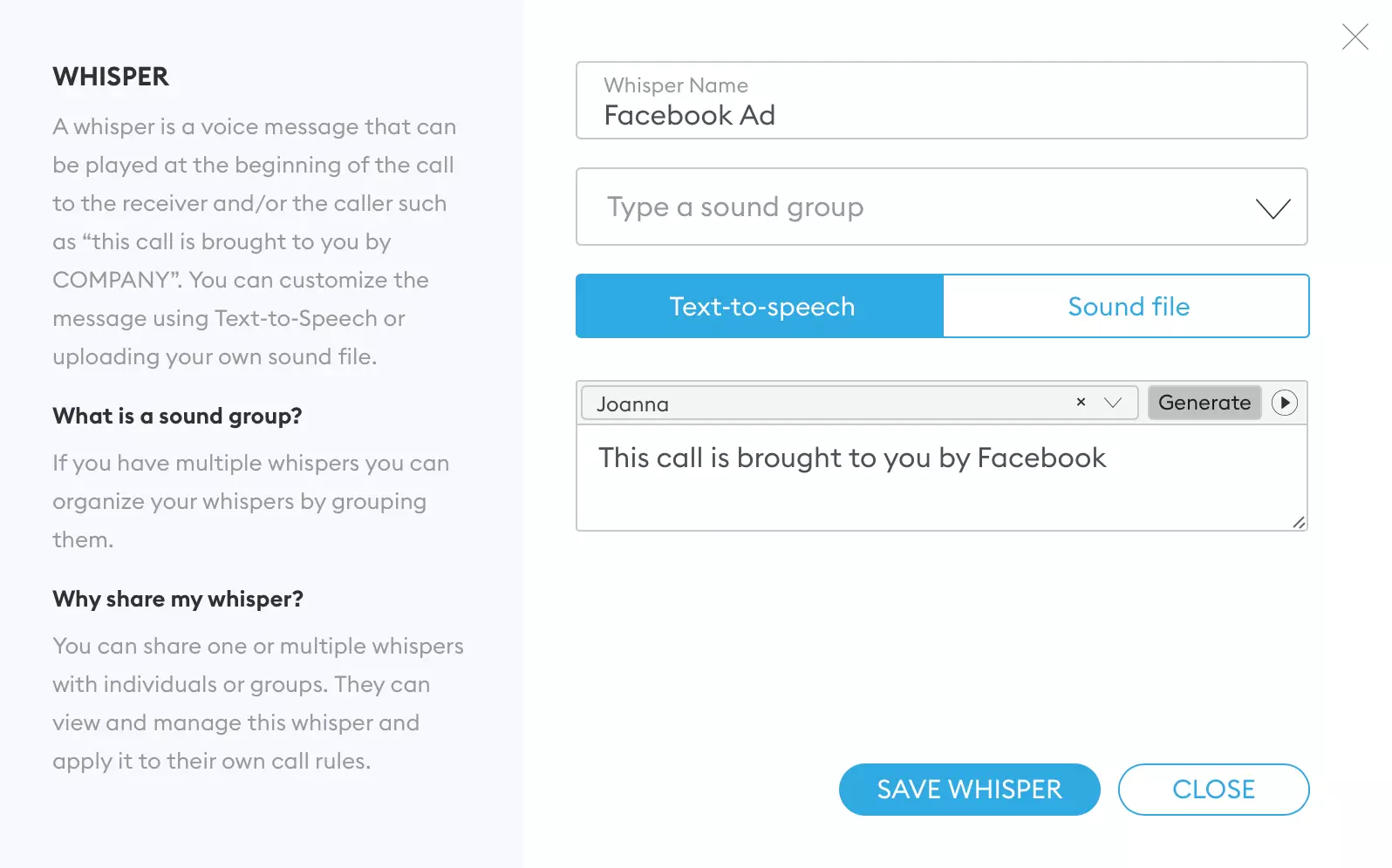 Call Whispers increase brand awareness and help your customers understand your value.